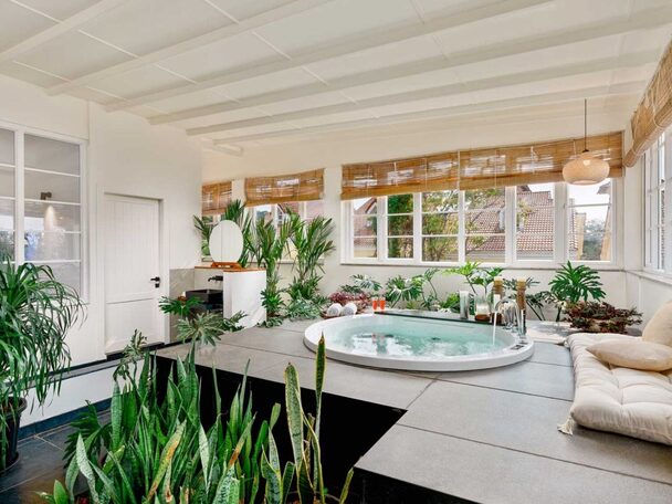 - Дизайн: своды в марокканском стиле, терракота под ногами и панорамные окна, стирающие границу между интерьером и джунглями.